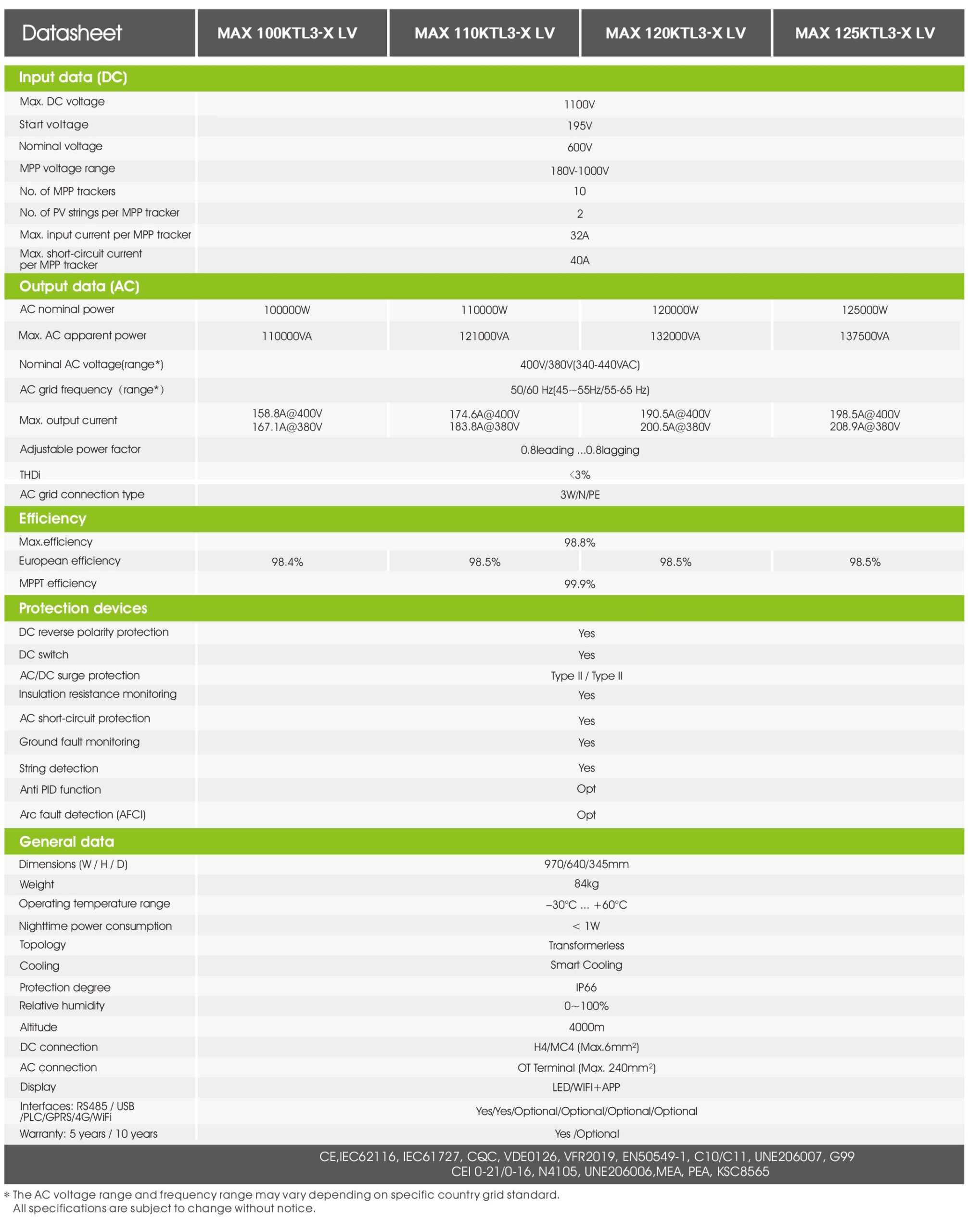 MAX 100KTL3-X LV/MAX 110KTL3-X LV/MAX 120KTL3-X LV/MAX 125KTL3-X LV